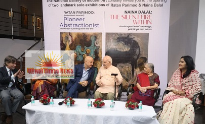 Mumbai, 13 September 2025 (UTN). The National Gallery of Modern Art (NGMA), Mumbai, in association with Gallerie Splash, is presenting two landmark retrospectives of legendary artists Ratan Parimoo (89 years) and Naina Dalal (90 years). Ace actor Anupam Kher lit up the occasion as he inaugurated the shows, graced by the presence of artists Ratan Parimoo and Naina Dalal, along with diplomats, curators, and leading figures from Mumbai’s art fraternity, including Daniel Quer Confalonieri (Consul General, Embassy of Argentina), Farhana Ahmed Chowdhury (Deputy High Commissioner, Embassy of Bangladesh), IAS Nidhi Choudhari (Director – NGMA Mumbai), Curatorial Advisor for the two retrospective shows Girish Shahane, Gallerist Jinoy Payyappilly and independent curator and art historian Gauri Krishnan, among others.