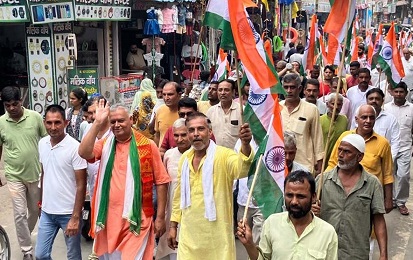 खेकड़ा,12 अगस्त 2025 (यूटीएन)। आजादी के अमृत महोत्सव के अंतर्गत मंगलवार को कस्बे में भव्य तिरंगा यात्रा निकाली गई। यात्रा में शामिल युवाओं और छात्रों ने ‘भारत माता की जय’ तथा देशभक्ति के नारों से वातावरण गुंजायमान कर दिया। प्रमुख चौराहों पर पुष्पवर्षा कर लोगों ने यात्रा का स्वागत किया।
