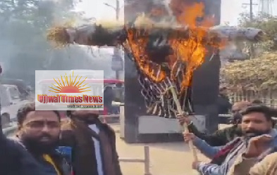हिंदू महासभा ने बांग्लादेश सरकार का फूंका पुतला, जमकर की नारेबाजी
