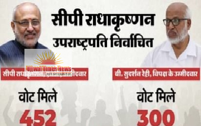 नई दिल्ली, 09 सितम्बर (यूटीएन)। एनडीए के उम्मीदवार सीपी राधाकृष्णन देश के नए उपराष्ट्रपति निर्वाचित हुए हैं। आज हुए मतदान में सीपी राधाकृष्णन को कुल 452 वोट मिले। वहीं विपक्षी गठबंधन इंडिया के उम्मीदवार सुदर्शन रेड्डी को 300 वोट मिले। राधाकृष्णन ने 152 वोटों के अंतर से जीत दर्ज की। उप राष्ट्रपति चुनाव में कुल 98 प्रतिशत मतदान दर्ज किया गया। शाम पांच बजे मतदान समाप्त होने के एक घंटे बाद छह बजे मतगणना प्रारंभ हुई। मतगणना समाप्त होने के बाद आज देर शाम नतीजे घोषित किए गए। जिसमें एनडीए उम्मीदवार को कुल 452 वोट मिले। जबकि विपक्ष के उम्मीदवार को 300 वोट मिले।